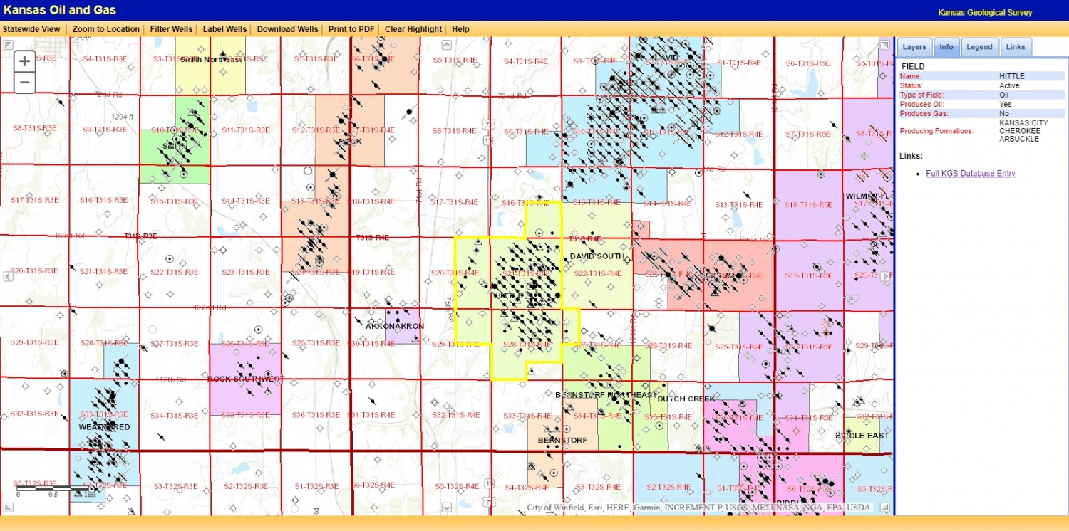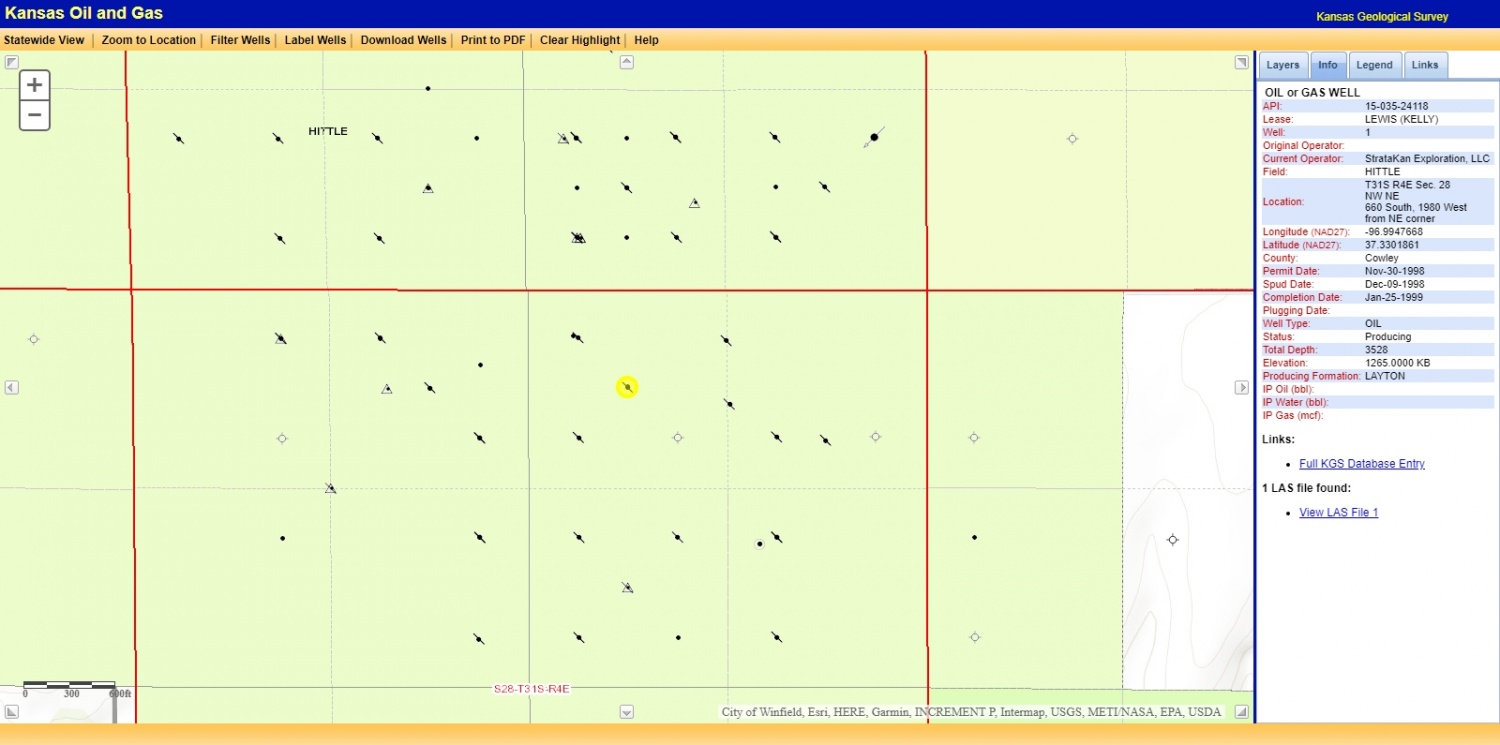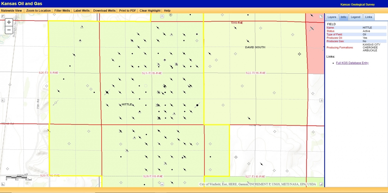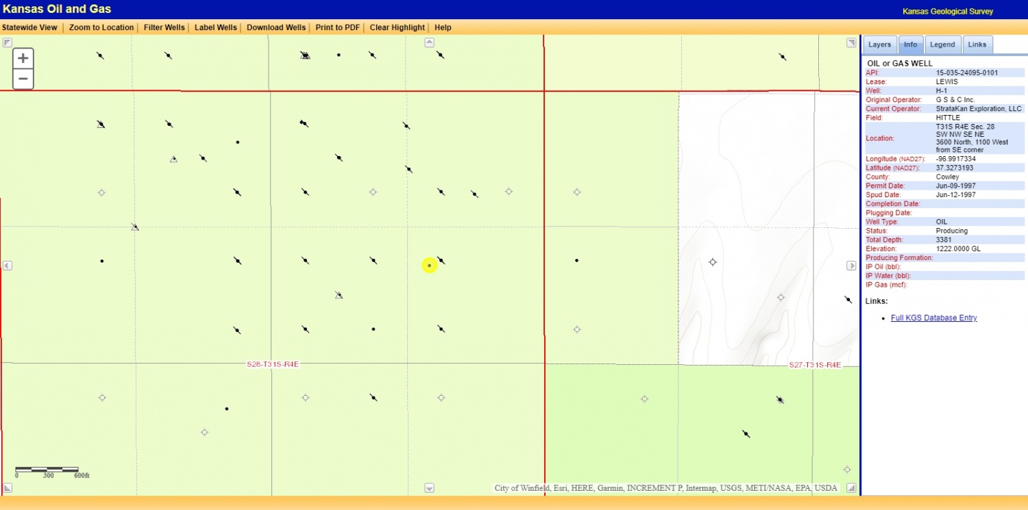 Lage und Umgebung Hittle Field Cowley County - Hittle FieldÖlquellenLewis H-1 Lewis ( Kelly ) Oktober 2018 - Produktion mit den neuen Pumpen wurde gestartet Zurück
